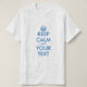Camisa Blue Keep Calm | modelo personalizável Mantenha calma e carregar no fabricante de camisetas. Camiseta KeepCalm personalizável com letras azuis reais. Personalize a coroa e envie um texto com sua própria citação engraçada ou com um ditado humorístico. Design sua própria camisa fácil e rápido.