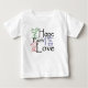 Símbolos chineses para a esperança, o amor e a fé, na camisa do bebê