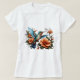 Camiseta com design de pássaro fofo. Um belo design de pássaros zunidos na t-shirt com pinks e blues e outras cores no seu peito para o fazer pop.