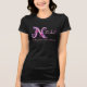 Desenho bonito do t-shirt do nome e do significado do monograma de N. Ideal para um presente personalizado para uma menina que tenha um começo conhecido com N. Este exemplo lê o nascimento de Natasha do senhor, abençoado com beleza ou você pode personalizar o texto com suas próprias palavras do nome e do significado se for necessário. Ideal como um presente especial do aniversário ou da celebração. Se você precisa a ajuda com seu próprio nome personalizado por favor contacte-me. Corações tipográficos principais da letra N e flores que tiram e conversão gráfica nas máscaras de cor-de-rosa, de roxo, o branco e os azuis marinhos criados excepcionalmente por Sarah Trett. www.sarahtrett.com para www.mylittleeden.com