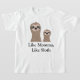 Camisa de moça com duas preguiças — uma grande preguiça e uma pequena preguiça. Na legenda lê-se "Como a mamãe, como a loth"