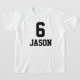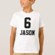 Shirt voor de leeftijd 6. O imene Voor Morre, o javar é enfiado. Daar onder kan je de naam van de aniversário boy veranderen.