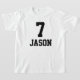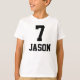 Shirt voor de leeftijd 7. Voor iemand die zeven jaar é geworden. Daar onder kan je de naam van de aniversário boy veranderen.