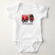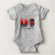 Camisa de aniversário com ilustração de um caminhão de bombeiros vermelho. Personalize o nome e a idade.