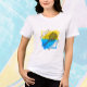 Camiseta gráfica de seleção com tipografia "PICKLE BALLER". O gráfico está na frente deste topo. Cor azul, amarela e preta. Manter o texto atual ou alterá-lo. Use o modelo para criar sua própria t-shirt gráfica de picleball.
