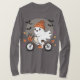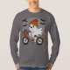 Uma camisa divertida e assustadora com um fantasma de desenho animado sorridente andando de bicicleta com uma lua de cheio no fundo. Perfeito para o Halloween ou qualquer dia do ano. Esta camisa confortável e na moda é perfeita para truques ou tratamentos ou qualquer outra atividade do Dia das Bruxas. O design brincalhão é um sucesso com crianças e adultos. Um dever para qualquer fã de fantasmas, bicicletas, ou apenas diversão. Esta camisa é assustadora e adorável.