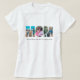 Esta é uma camisa com uma colagem de fotos que soletra a palavra MOM junto com uma mensagem personalizada. Este é o presente perfeito para a mãe para o dia de as mães, o aniversário ou o Natal.