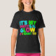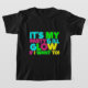 Um brilho na camisa da festa escura que diz "É minha festa e eu vou brilhar se quiser". É divertido, colorido e fofo para uma festa de aniversário!