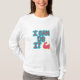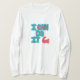 Esta camiseta apresenta um design ousado com a frase "EU POSSO FAZER ISSO" em cores azul e rosa. Abaixo do texto está uma ilustração de um braço flexível, reproduzido em amarelo e rosa. O design transmite uma mensagem de motivação e autoconfiança.