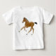 Design original das belas artes de um potro pequeno bonito do cavalo do puro-sangue pelo artista eqüino Carolyn McFann do estúdio de ronrom de dois gatos impresso em um t-shirt macio, customizável da malha do jérsei do bebê.