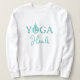 Camisa de manga longa Yoga Heals com silhueta de asana / pose. Roupas legais para fãs de yoga, professor, instrutor, treinador de pilates, treinador esportivo, personal trainer etc. Cor azul-turquesa ou cor personalizada.