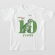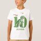 Um ousado dinossauro T Rex com um voo de aniversário de Pterodactyls. Excelente para 10 anos ou mais. Dinossauro de aquarela verde-escura. Adicione seu nome e idade.