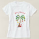 A camisa feminina é mostrada com um impressão de palmeira festivo com texto de Feliz Navidad. Cor Branca perfeita para os feriados. Personalize este item ou comprar como está.