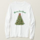Esta camisa festiva apresenta um design que captura toda a alegria da época de Natal A árvore de Natal é embelezada com ornamentos de ouro e um arco de feriado vermelho. Personalizou esta camisa com suas próprias palavras ou comprar, como mostrado com Feliz Natal.