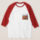 O antigo arenito nesta cena do deserto de Sonoran - do Vale do Mistério perto do Vale do Monumento na Arizona - dá a esta camisa de manga de 3/4 raglan um sabor único no Sudoeste. A cena é impressa no fundo e no bolso.