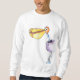 O design nesta camisa de suor é um pássaro dos desenhos animados com um bico incomum, uma cabeça alaranjada e as listras azuis e brancas nele são pescoço. Está quebrando livre de seu escudo de ovo roxo. Derwint coloriu a ilustração do lápis. Clique o botão da personalização para adicionar o texto e personalizá-lo.