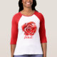 Camiseta feminina mangas raglan 3/4 da Bella+Canvas, Branco/Cor-de-rosa, Adulto P