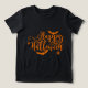 Prepare-se para um tempo assustador para o Dia das Bruxas com a camiseta deste menino mostrada com um impressão gráfico feliz feliz do Dia das Bruxas. Cor Preto Impressão é Laranja Personalize este item ou comprar como está. Imagem licenciada