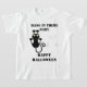 Esta camiseta infantil é mostrada em branco com um impressão de gato preto de Halloween. Personalize esta camisa ou comprar como está.