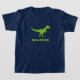 Camisa verde de néon bonito do dinossauro t do trex personalizada com nome dos miúdos. Design pré-histórico bonito da roupa do rex de t para a festa de aniversário dos rapazes pequenos. Faça um para o filho, o neto, o bebê novo, o neto, a mamã nova, a mãe para ser, a criança recém-nascida, a ilustração animal dos desenhos animados do t-rex pre histórico selvagem do big brother etc. para crianças. Rex do tiranossauro.