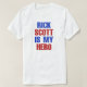 Está aqui uma pro camisa de Scott do rick que leia: O rick Scott é meu herói.
