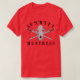Escarlate da camisa do Huntress com espadas do cruzamento e crânio do homem-lobo.
