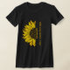 Uma camiseta na moda com meia design de girassol com a frase inspiradora: "Com cada nascer do sol, uma nova oportunidade" simbolizando otimismo e novos começos.