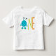 Camisa de primeira festa de aniversário do Monstro Um com monstro azul giro.