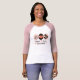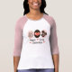 Camiseta feminina mangas raglan 3/4 da Bella+Canvas, Branco/Cor-de-rosa, Adulto P