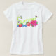 Camisa do verão do divertimento! "Verão" escrito em um design tirado mão com flores, bagas, e insetos do verão em torno das letras.
