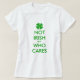 Festa de Dia de São Patrício verde engraçada para garotas não irlandesas. Não irlandês, mas quem se importa. Mantenha calma e carregar na paródia da camisa para o Dia de São Patrício. Camiseta KeepCalm personalizável com trevo de 4 folhas e letras tipográficas. Personalize a imagem e o texto com sua própria citação engraçada ou um ditado humorístico para o Dia de São Patrício. Design sua camisa de Pats de Rua fácil e rápido.
