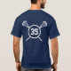 Camisa customizável do número do jogador do lacrosse. Varas e círculo cruzados do lacrosse com seu número personalizado para dentro. Design feito sob encomenda do lacrosse. Design branco no fundo escuro.