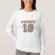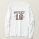 Um doce desportivo cor-de-rosa e marrom bonito 16 do estilo do jérsei flanqueado por duas estrelas em camisas femininos do doce dezesseis, em roupa, em roupa, em décimas sextas fontes da festa de aniversário, em presentes, em favores e em lembranças um adolescente é certo amar em seu 16o aniversário.