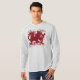 Camisa longa do Raglan da Capa dos homens temáticos do dragão vermelho de Galês. O dragão de Galês é sabido mais sendo descrito na bandeira de Wales. O dragão de Galês é um símbolo comum do poder em Wales, e tem o significado muito histórico no folclore europeu. É amarrado mesmo na legenda de Merlin e de rei Arthur.