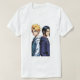 Duo de anime dinâmico de volta para trás com fundo vermelho e roxo feroz. Arte vetorial minimalista, estilo ousado, perfeito para fãs de anime e moda inspirada em manga.