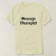 Procurando roupa de massagem ou camisas de terapeutas de massagem? Esta camisa tem as palavras "Terapista de Massagem" em uma fonte divertida, com as mãos fazendo parte das letras. Faz um presente excelente para um massagista. Bom para qualquer pessoa que tenha formação em massagem ou terapia em massagem ou carroçaria: massagem tailandesa, shiatsu, massagem chinesa, massagem oriental, massagem sueca, reflexologia, massagem spa, massagem pré-natal, massagem desportiva, massagem nos pés, massagem na cabeça, massagem por aromaterapia, massagem médica, massagem por equinos, massagem no canino, massagem profunda nos tecidos lombares, massagens massagem, massagem corporal e para terapeutas de massagem licenciados ou terapeutas de massagem certificados.