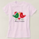 Dois pássaros de Natal desejando a todos um Natal muito feliz, com dois beija-flores, flocos de neve e corações. O pássaro macho está vestindo um chapéu de Papai Noel. A ave fêmea tem pestanas bonito. Personalize-o com a sua própria saudação ou mensagem. Excelente para casamentos de Natal, um primeiro Natal e aniversários. PinkInkArt original!
