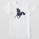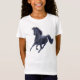 Um cavalo preto do puro-sangue galopa neste design eqüino por Carolyn McFann do estúdio de ronrom de dois gatos. Um grande presente para fãs e cavaleiros pequenos do cavalo.