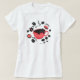 Esta camiseta apresenta uma design bichos que combina dois dos maiores confortos da vida: café e gatos! Um gato preto, doce e de olhos largos, espreita de uma vibrante caneca de café vermelha, cercado por grãos de café, flores e rosquinhas deliciosas. É a camisa perfeita para qualquer um que começa seu dia com um amor por cafeína e um amigo peludo.