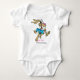 Esta imagem mostra uma roupa branca para bebês impressa com um coelho de desenho animado a girar energicamente, vestindo uma camisa azul e carregando uma câmera ao redor do pescoço. O texto "você escreve" abaixo sugere que este é um design personalizável. O caráter lúdico e aventureiro faz dela uma escolha divertida e caprichosa para o visto personalizado de bebês — perfeito para famílias que amam a fotografia ou como um presente peculiar para pequenos exploradores.
