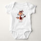 Esta imagem mostra uma roupa branca para bebês impressa com uma animadora dança de médio de vaca, braços levantados e pernas chutando em movimento alegre. O texto "seu texto" abaixo da vaca sugere que este é um design personalizável. O caráter lúdico e enérgico faz dela uma escolha divertida e viva para o visto personalizado de bebês — perfeito para presentes temáticos ou sorrisos do dia a dia.
