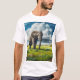 Uma camiseta é um topo casual de manga curta feito de tecido macio e respirável como algodão ou uma mistura de algodão. Geralmente tem um colar redondo e sem colarinho. As camisas vêm em várias cores, padrões e tamanhos, e são vestidas por pessoas de todas as idades. Eles podem ser simples ou impressos com gráficos, slogans ou logotipos, fazer-os tanto uma declaração de moda quanto uma confortável escolha de roupas.