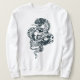 Esta imagem é uma ilustração estilizada a preto-e-branco de um cobra enrolado ao redor do crânio. A design ousada tem linhas agudas e alto contraste, dando-lhe uma aparência impressionante e dramática.