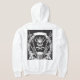 Esta imagem apresenta um design heráldico detalhado e dramático. No centro está um crânio adornado com uma coroa e chifres, cercado por um anel de espadas cruzadas, machados e pistolas. Abaixo, dois leões heráldicos ficam guardas sobre um tambor. O design é renderizado em preto e branco, criando um contraste impressionante em relação ao fundo escuro