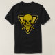 Design de risco de precaução inspirado em sinais de perigo e aviso. Sinal de crânio de descaroçamento preto e amarelo com elementos de talo e tara.