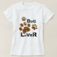 Gráfico colorido de cachorro com pintura colorida com estampas de pata em várias camisas coloridas