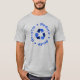 Reduzir - Reutilizar - Reciclar - Camisa de conscientização ambiental com letras azuis e símbolo de reciclagem.