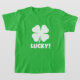 Camisa verde de Dia de São Patrício de trevo para crianças. Logotipo de shamrock grande com texto personalizado. Tchau divertido para garotinho ou garota. Personalize com seu próprio nome ou citação engraçada.