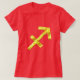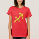 Tshirt do Sagitário no vermelho brilhante do poder com símbolo do sagittarius do ouro. Outros estilos e cores estão disponíveis. Faça sua indicação com pizzazz.