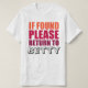Esta design é destinada a ser personalizada com o nome do seu melhor amigo, companheiro, cônjuge ou parceiro. É perfeitamente compatível com a nossa camisa "Eu sou Betty". Não se perca quando estiver na estrada. Esta design humorística também funciona como uma fantasia de pares ou presente de casamento e é adequada para o fundo branco e leve. Facilmente personalizado mudando "Betty" para qualquer outro nome e cor.